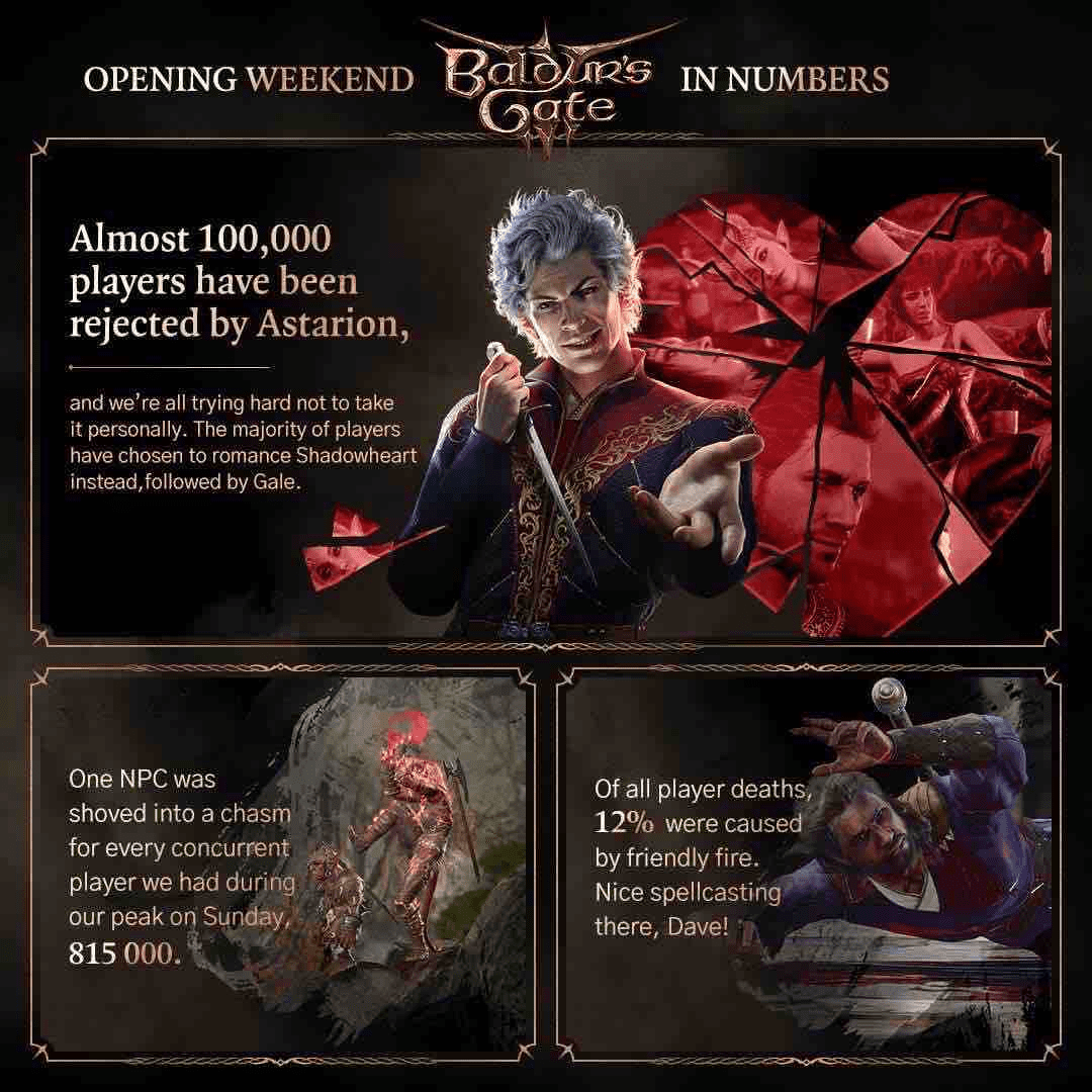 Η Larian μοιράστηκε τα πρώτα στατιστικά του Baldur’s Gate 3 και είναι ήδη εντυπωσιακά. Αρχικά οι παίκτες έχουν παίξει συνολικά περισσότερα από 1.225 χρόνια! Όσον αφορά τα races που επιλέγουν, η πρώτη τους επιλογή είναι τα Half-Elf, ενώ δεύτερη επιλογή είναι οι Humans, με τα Halfling και Githyanki θα είναι στις τελευταίες θέσεις.