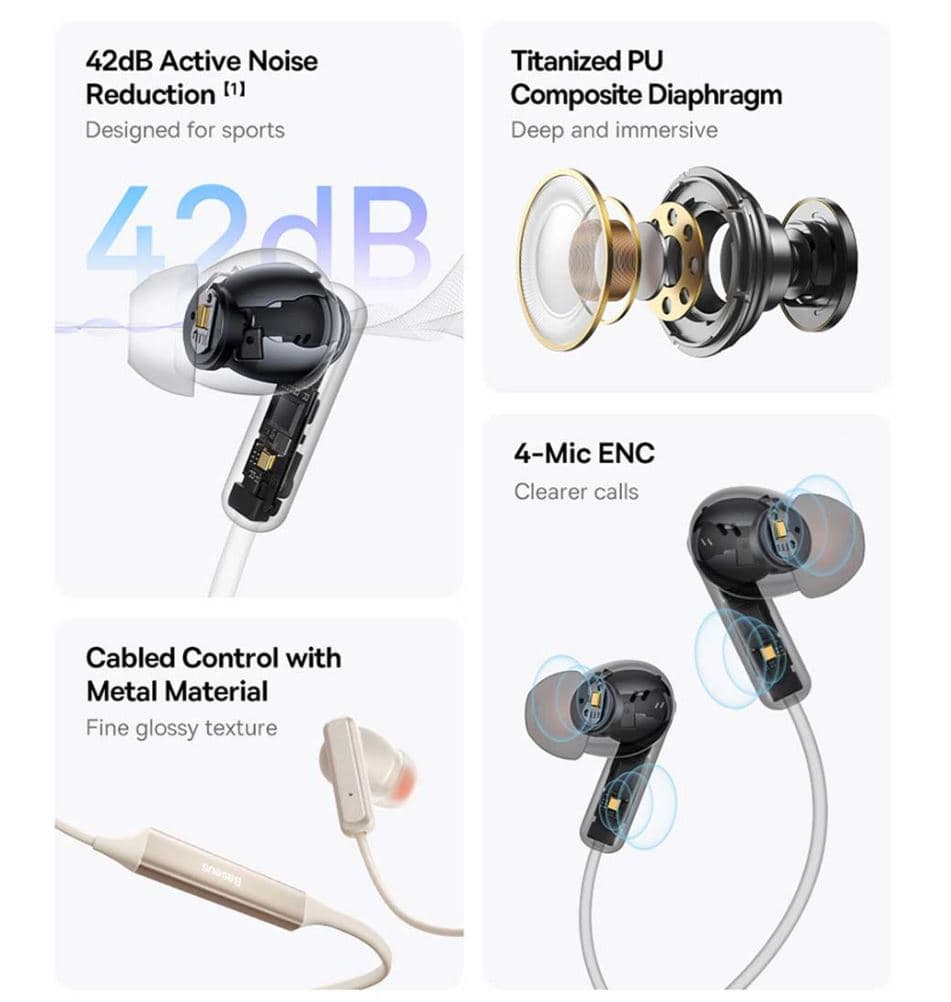 Πρόσθεσε μια ειδοποίηση για Baseus U2 Pro Wireless bluetooth 5.2 Earphone 10mm Titanized Moving Coil AAC SBC Decoding ANC/ENC… – €15,80